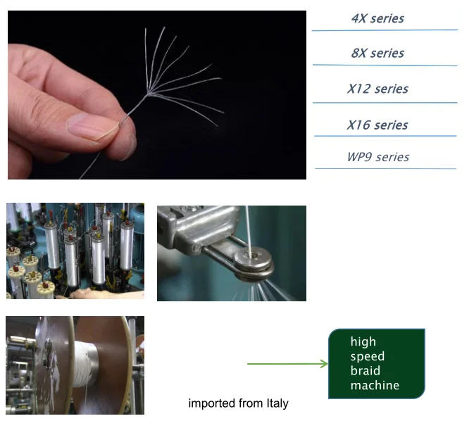 100٪ PE Multifilament 4/8/9/12/16 بافته خطوط ماهیگیری بافته شده